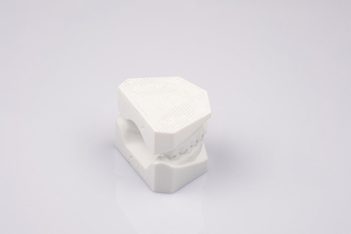 牙科专用树脂材料,适用于3D打印记存牙模。该材料成型速度快,成型精度高且表面硬度高。其高细节还原度及良好的模型质感可满足记存牙模生产的要求。该材料独特的超长期放置(大于3年)不变色不变形且性能仅略微下降的特性,可以较好的适配需要长期存放的记存牙模的场景需求。